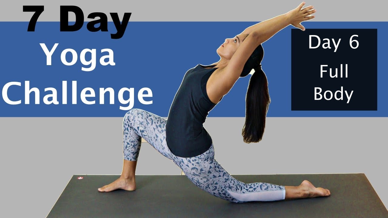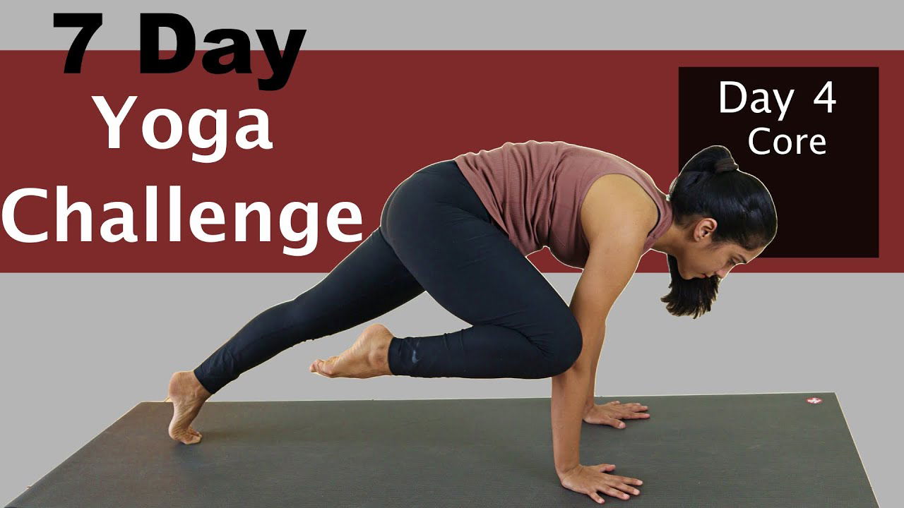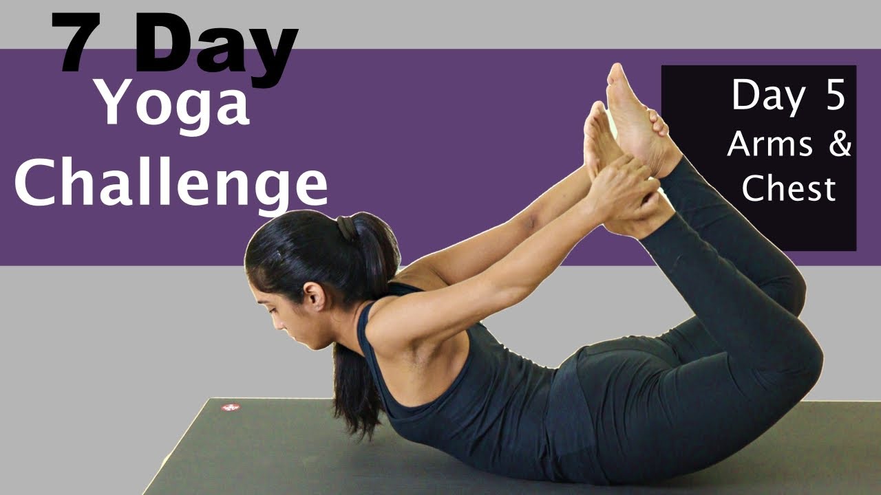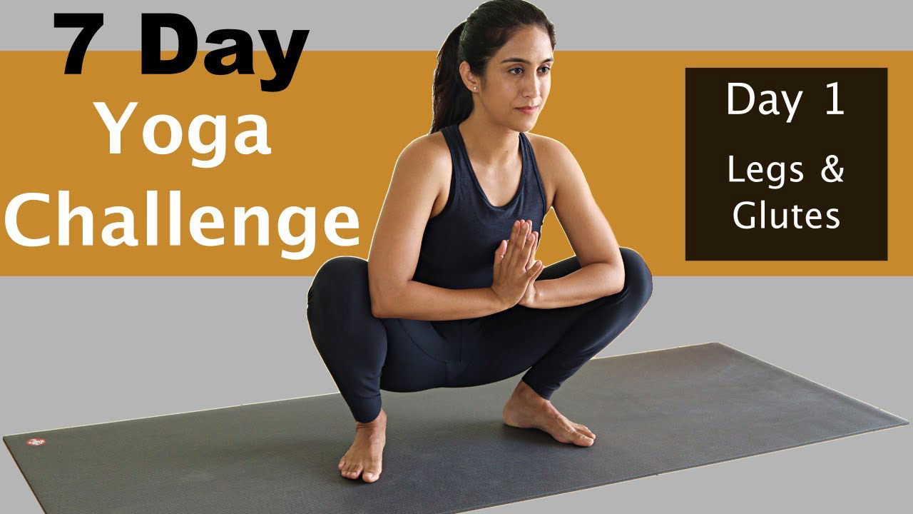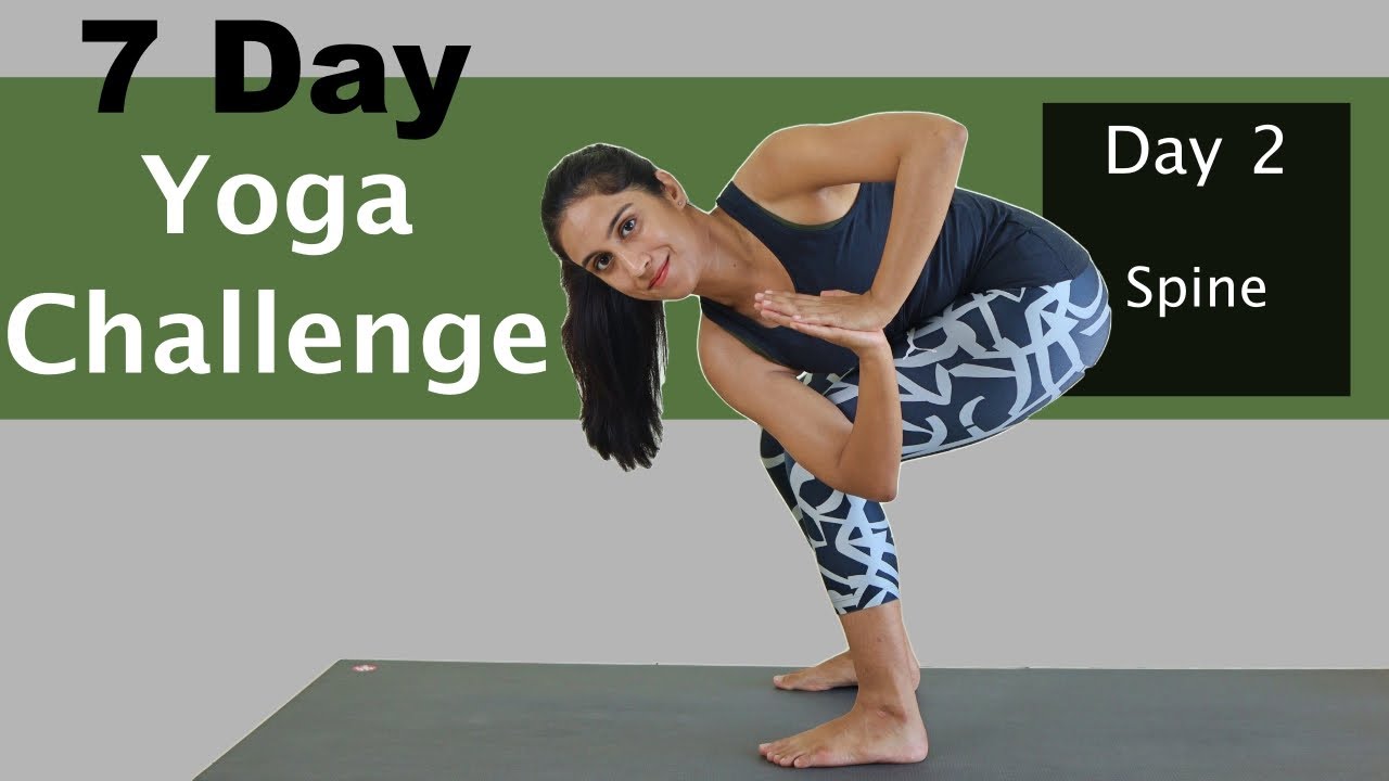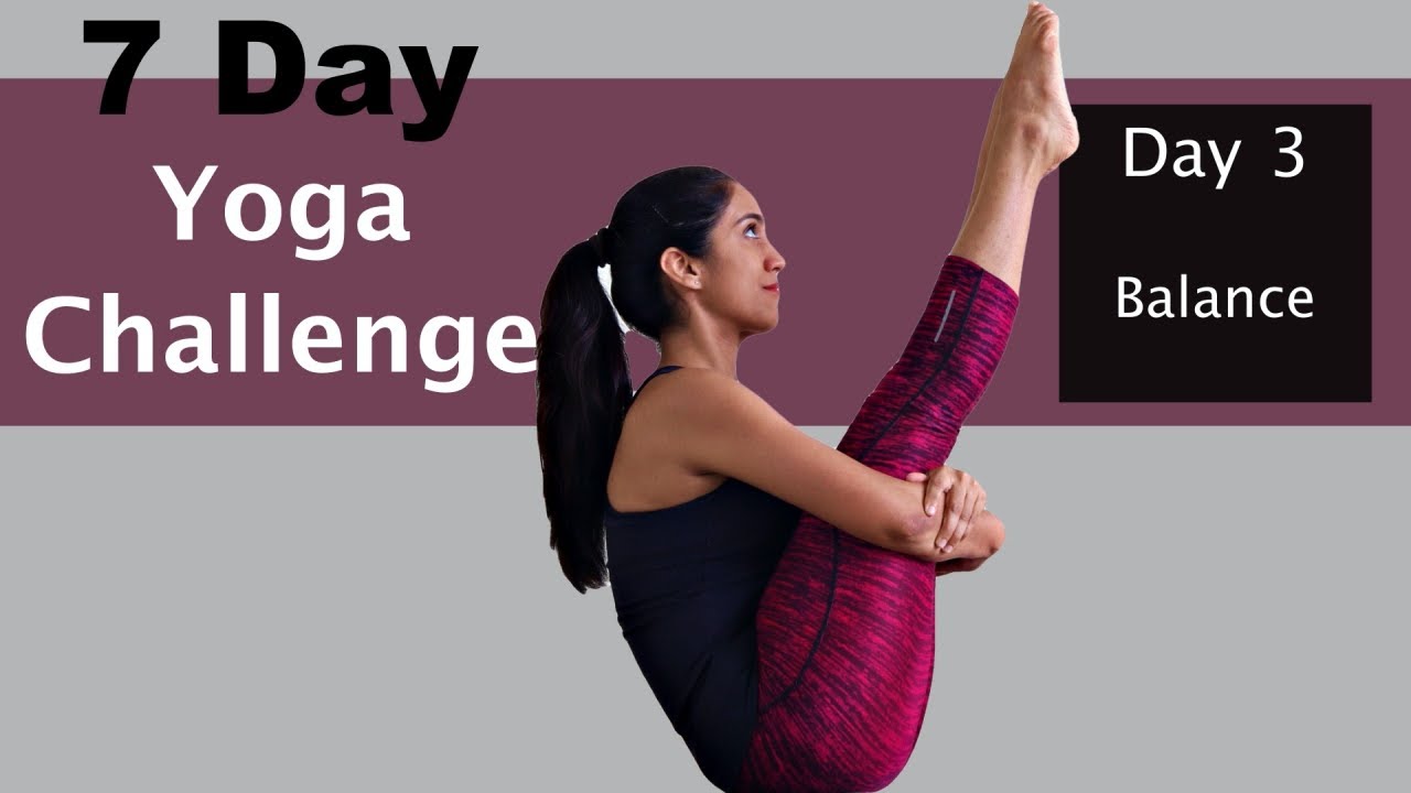 A progressive 7-day yoga challenge covering legs, spine, balance, core, arms, full body, and Surya Namaskar. Practice at home with guided sessions for all levels.